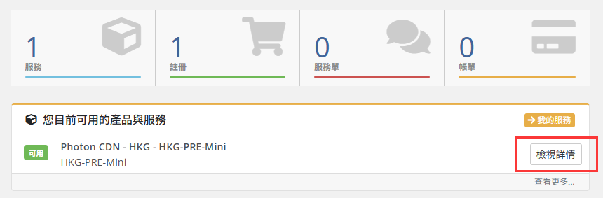 购买产品并付款后,进入后台产品中心,可以看到你购买的产品和服务: